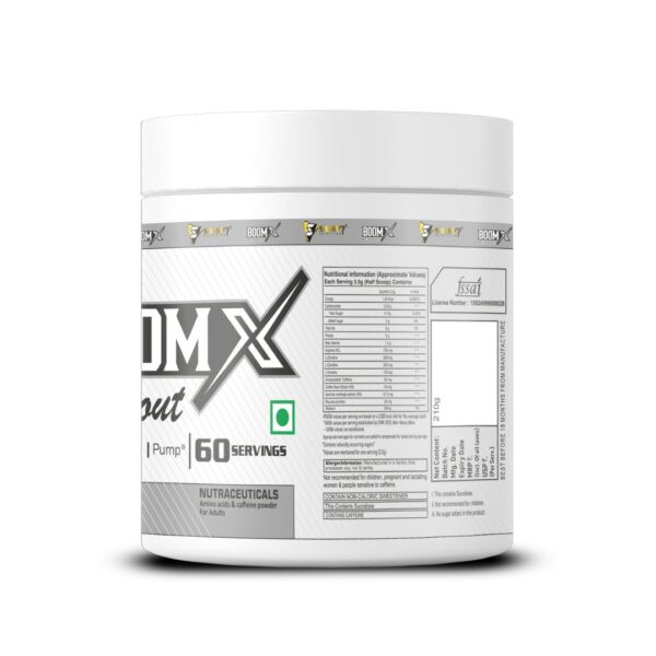With 60 servings per container, BOOM X Pre-Workout offers consistency and convenience for daily use. The formula mixes easily and can be consumed before workouts to support performance without replacing the importance of proper nutrition and hydration.